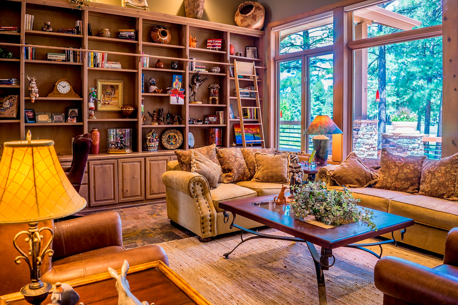 Si buscas crear un espacio acogedor, debes elegir tonalidades más cálidas. Por ejemplo, una gama de marrones cálidos en paredes y muebles será una elección perfecta para una biblioteca o sala de música, para invitarnos a la relajación y disfrutar, por ejemplo, de una tarde escuchando música tumbado en tu Earnes & Ottomann o perdiéndote entre las páginas de tu libro favorito.