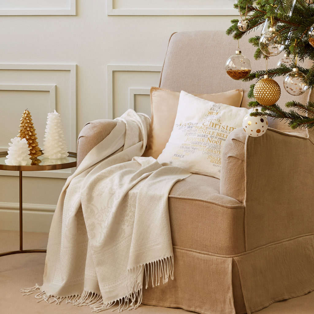 2. Cojines y Mantas. Una casa no puede parecer fría en Navidad y es por eso que debemos aprovechar las mantas y las alfombras para darle un toque cálido y acogedor tanto al salón como a las habitaciones. Además, con las texturas, los colores e incluso los cojines, podremos darle un color navideño a nuestro hogar aprovechando el encanto de la Navidad. Podemos encontrar cojines muy bonitos y mantas ideales en ZaraHome, por ejemplo.