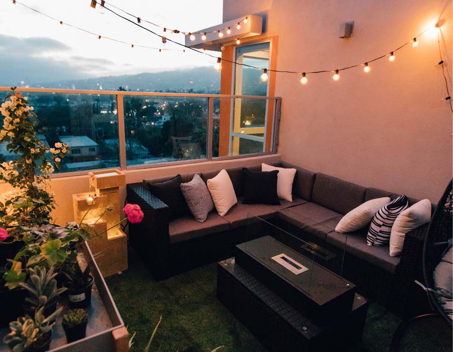 Para que esta zona se pueda disfrutar en otoño o invierno, hay que vestirla para la ocasión. Para ello utiliza tejidos fuertes y abrigados, como la lana. Y para darle un toque de revista decórala con unas mantas para poder echártela por encima en las tardes más frías y algunos cojines. Le darás un aspecto más cálido y estarás preparado para un bonito día soleado de invierno, que también los hay. Por cierto, si lo que quieres es conseguir el mayor sol posible, tu orientación más deseada es Sur, por si lo quieres tener en cuenta si estás buscando piso en venta en Barcelona.