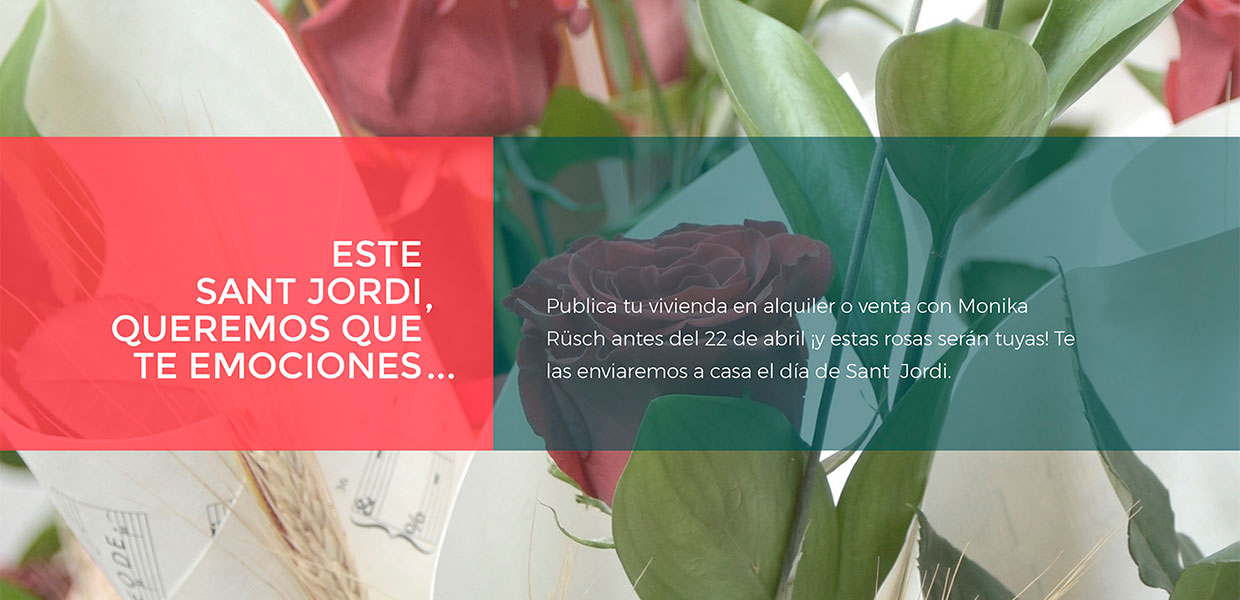 Hasta el 22 de abril, regalaremos un ramo de rosas a todas las personas que nos elijan para comercializar su propiedad en Barcelona, Castelldefels, Sant Cugat y Sitges Este Sant Jordi será muy diferente a todos los anteriores, pero en Monika