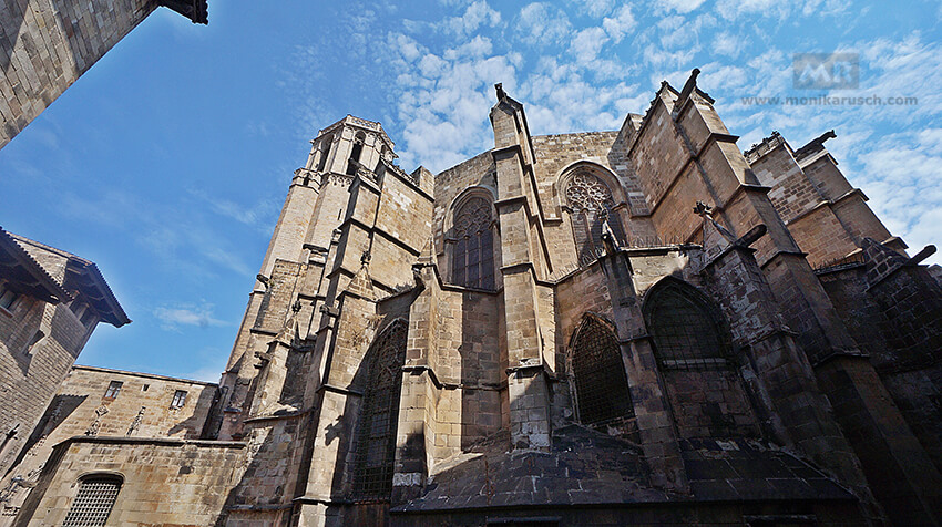 The Gothic Cathedral of Barcelona began to be built in the year 1298, on the previous Romanesque temple.