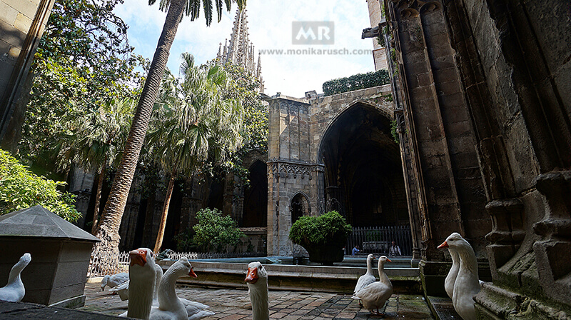 It is curious to see animals inside a cloister but Barcelona surprises in every way.